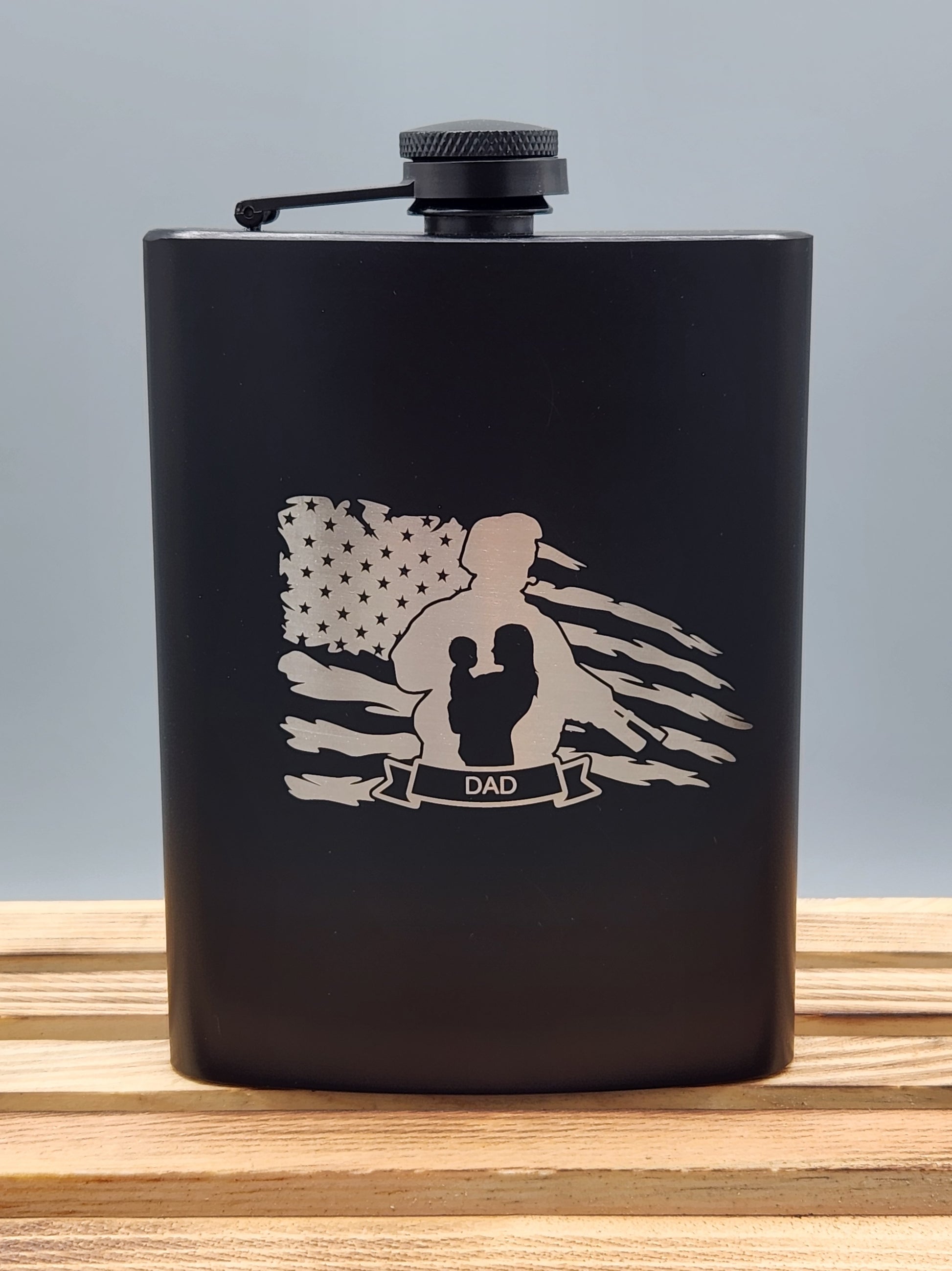 These 8oz Patriotic flasks are made with that special Father or father figure in your life in mind. They come with a silver funnel for easy filling up.